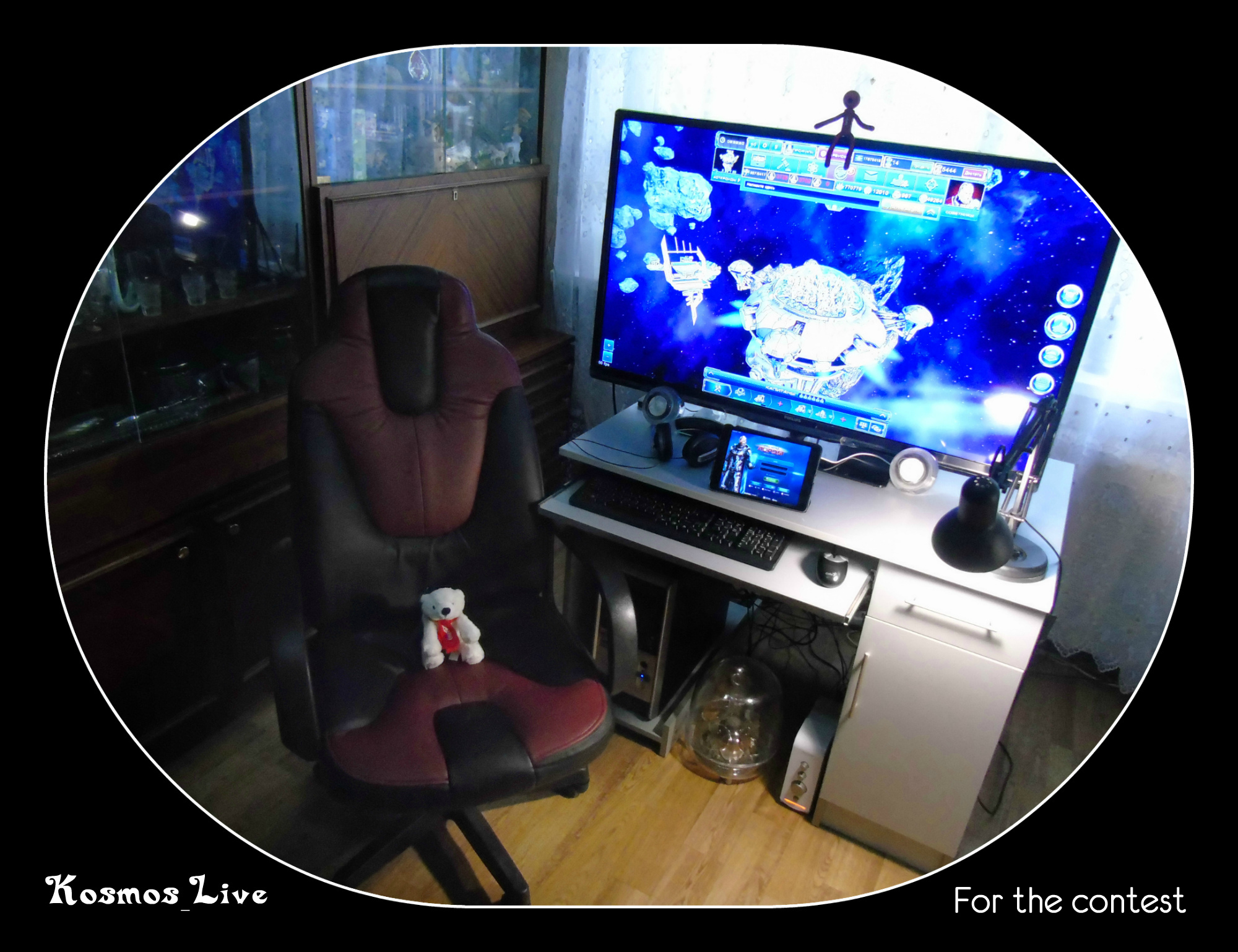 Ну, у меня не маленький монитор, а 24дюйма :D , что приемлемо для работы на два окна. И да: в соц.сеть выложили 3 фото, что выделяет типа их из всего облика. Что за креатив? Просили в задании показать свой кабинет. где и как играешь. Я показал стол с запущенным астером - это где и повтор боя - это как. Задание выполнено. В костюм наряжаться - не по моей части. :D