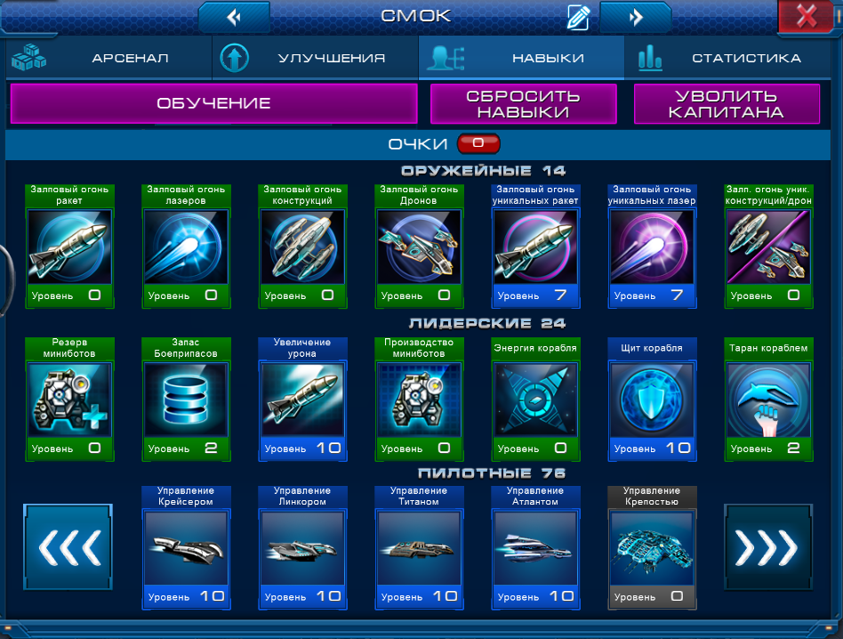 1) Сбросить Навыки Капитана. В этом случае вы получите нераспределенные очки навыков по 2 на уровень. После сброса распределить очки до нужного вам Корабля и подать заявку на участие в этой номинации. Недостаток этого способа в том, что дополнительные очки навыков просто исчезнут. Для их возврата (после Конкурса) придется увольнять Капитана и нанимать нового.