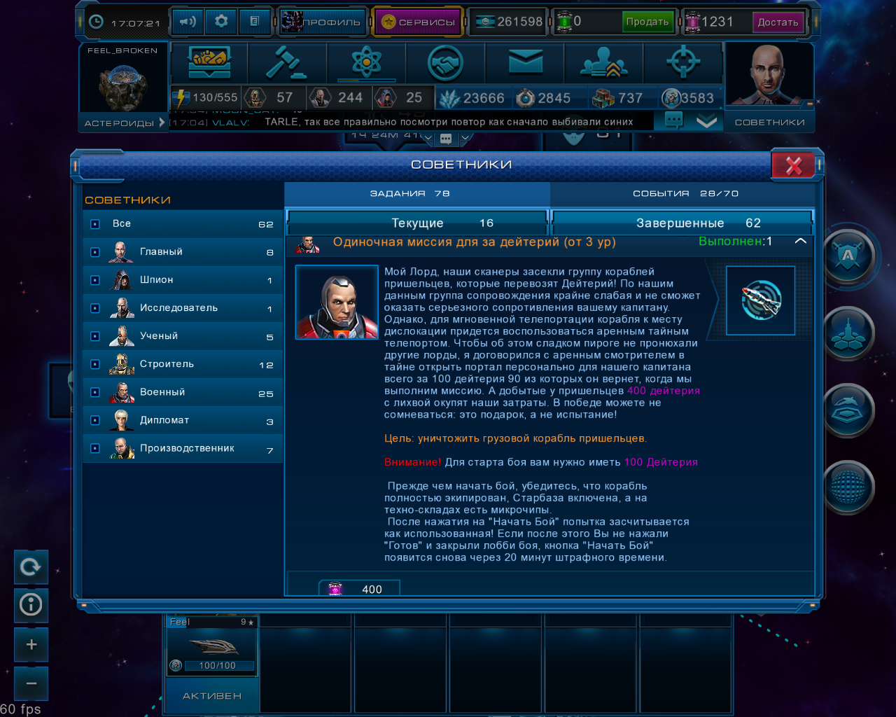Разработчики ввели в игру некоторые квесты за которые дают дейтерий (много дейтерия). Они называются "Одиночная миссия за дейтерий". Квест очень простой нужно уничтожить грузовой корабль пришельцев + за вас союзный корабль который уничтожит всех врагов даже без вашей помощи.