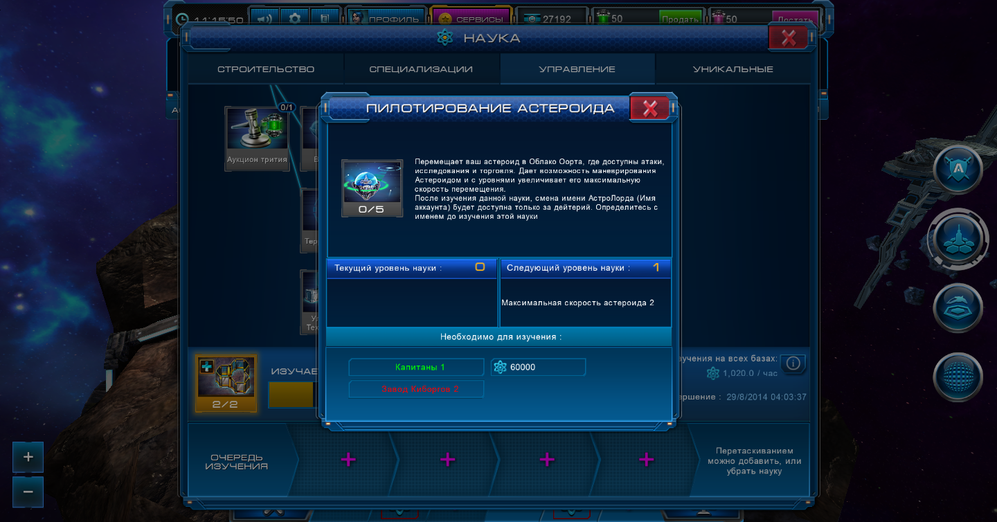 Не могу исследовать пилотирование астероида,хотя все условия для этого есть!!!! Почему??? Подскажите же...